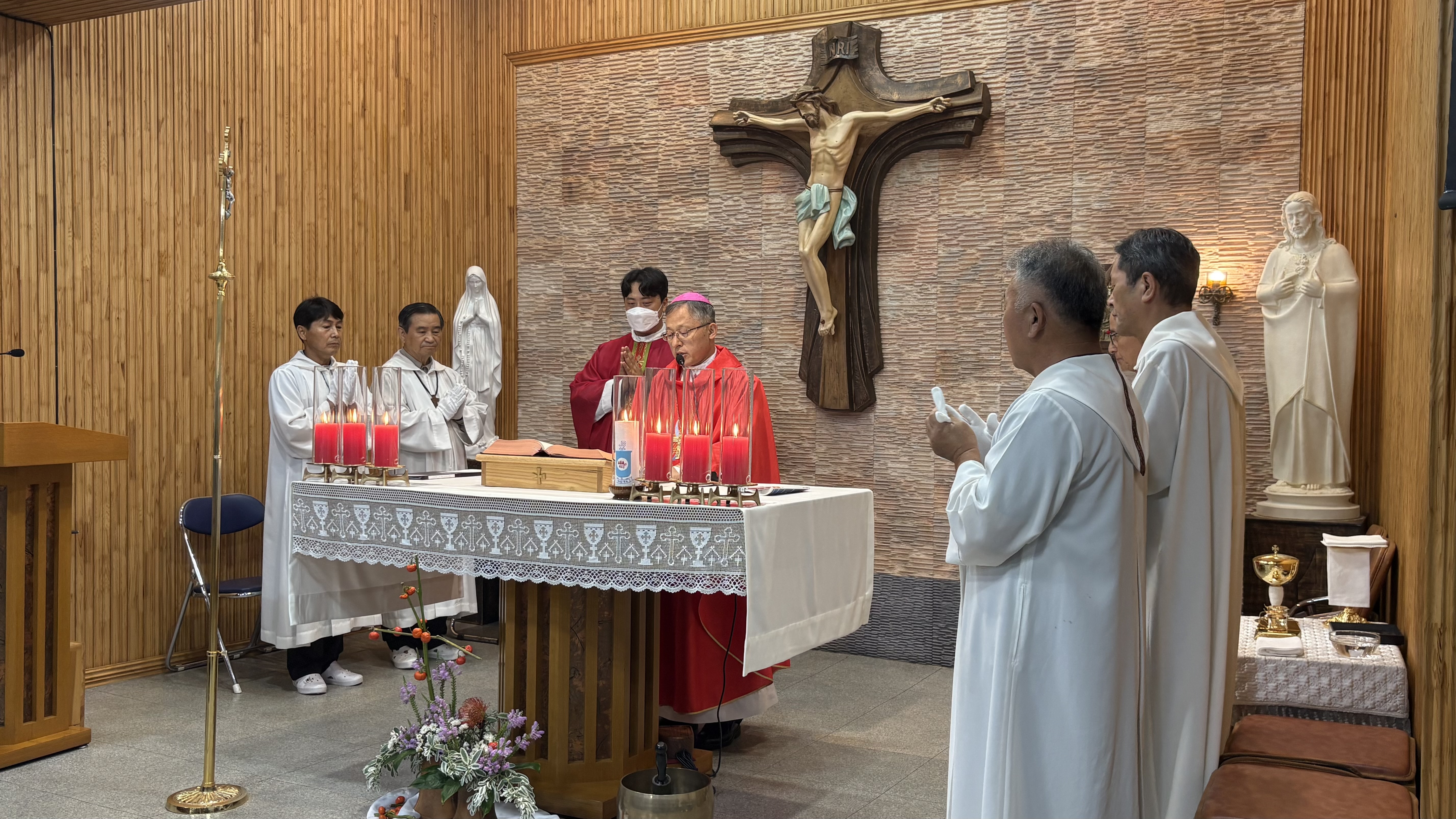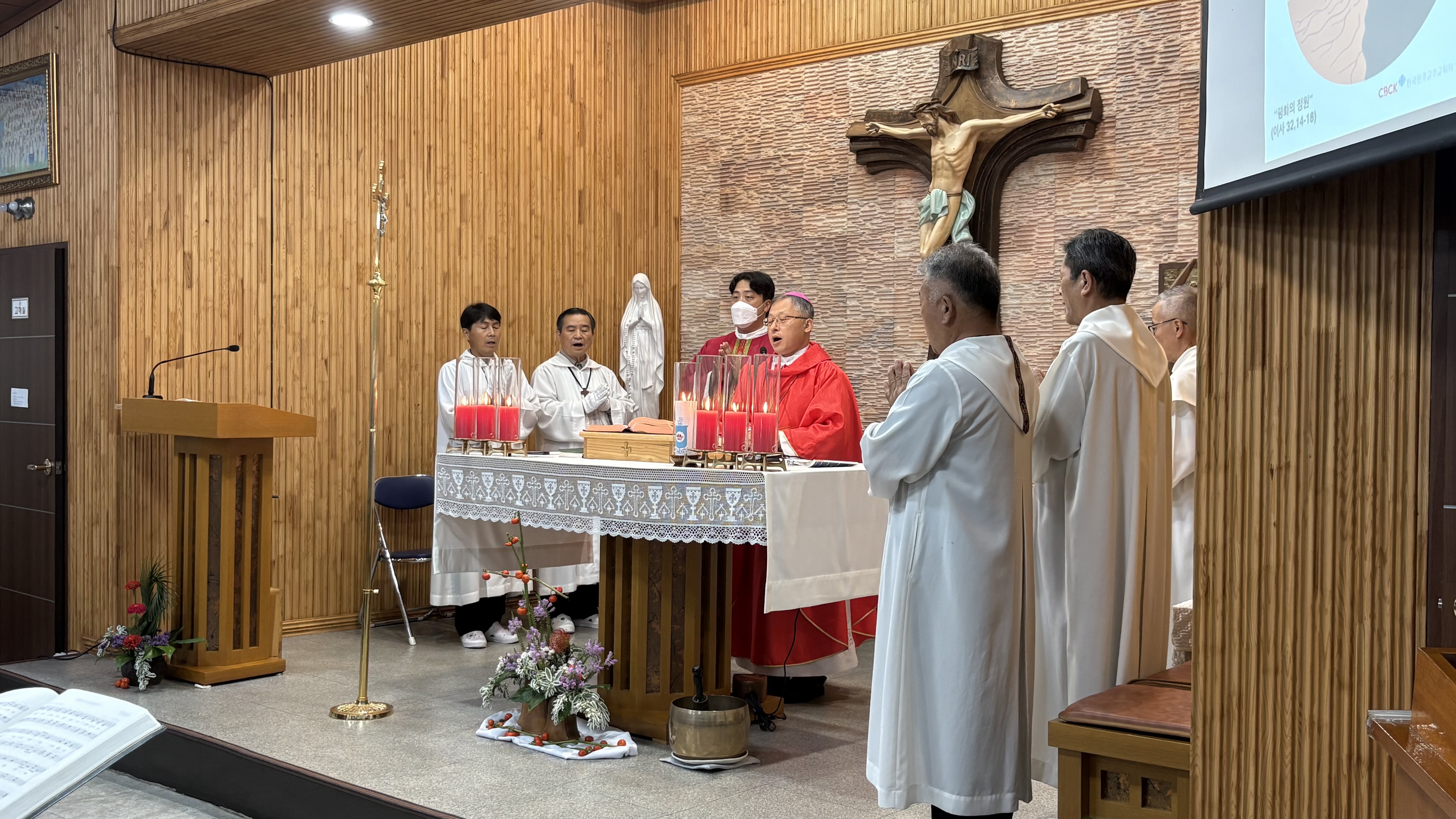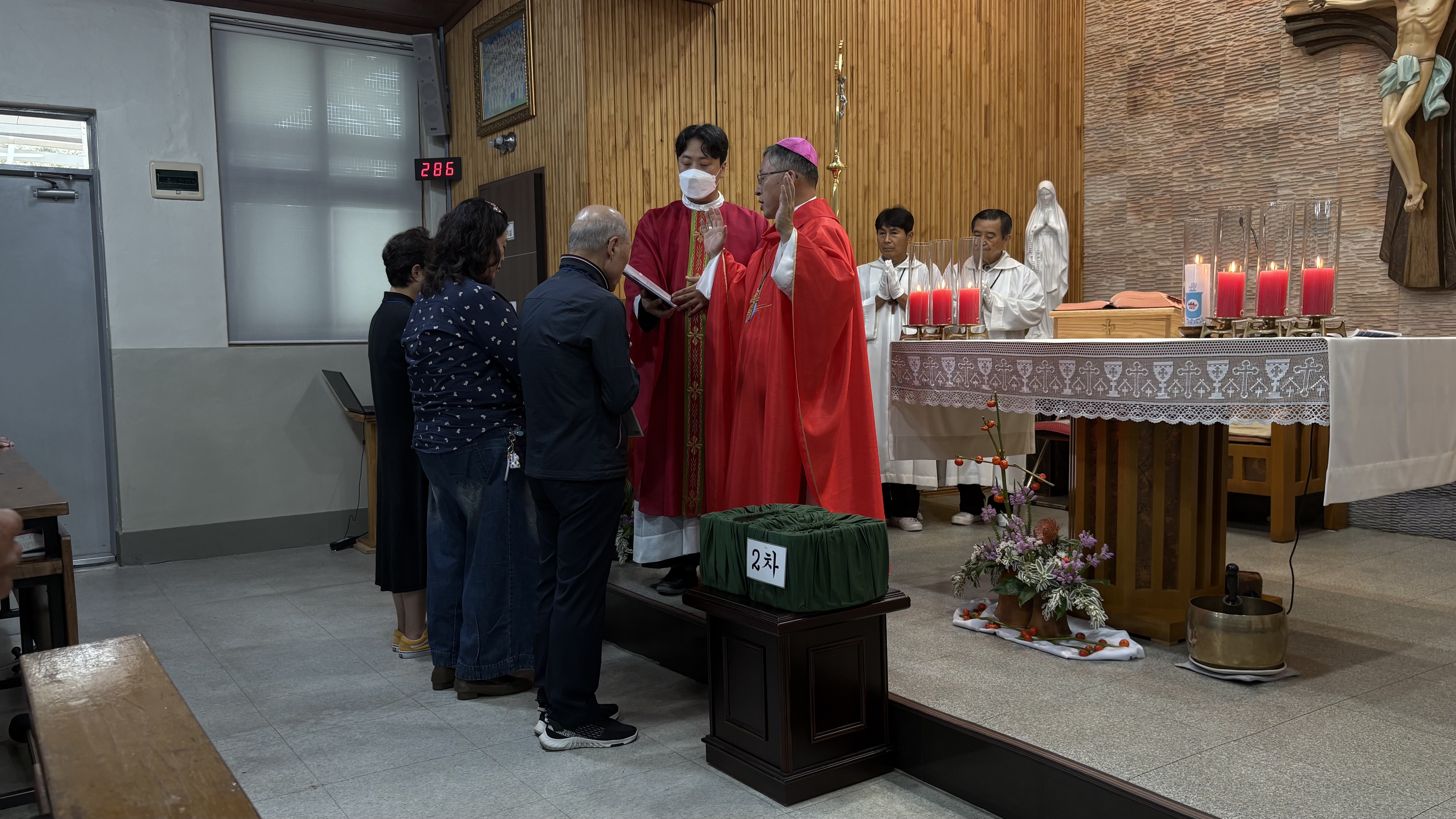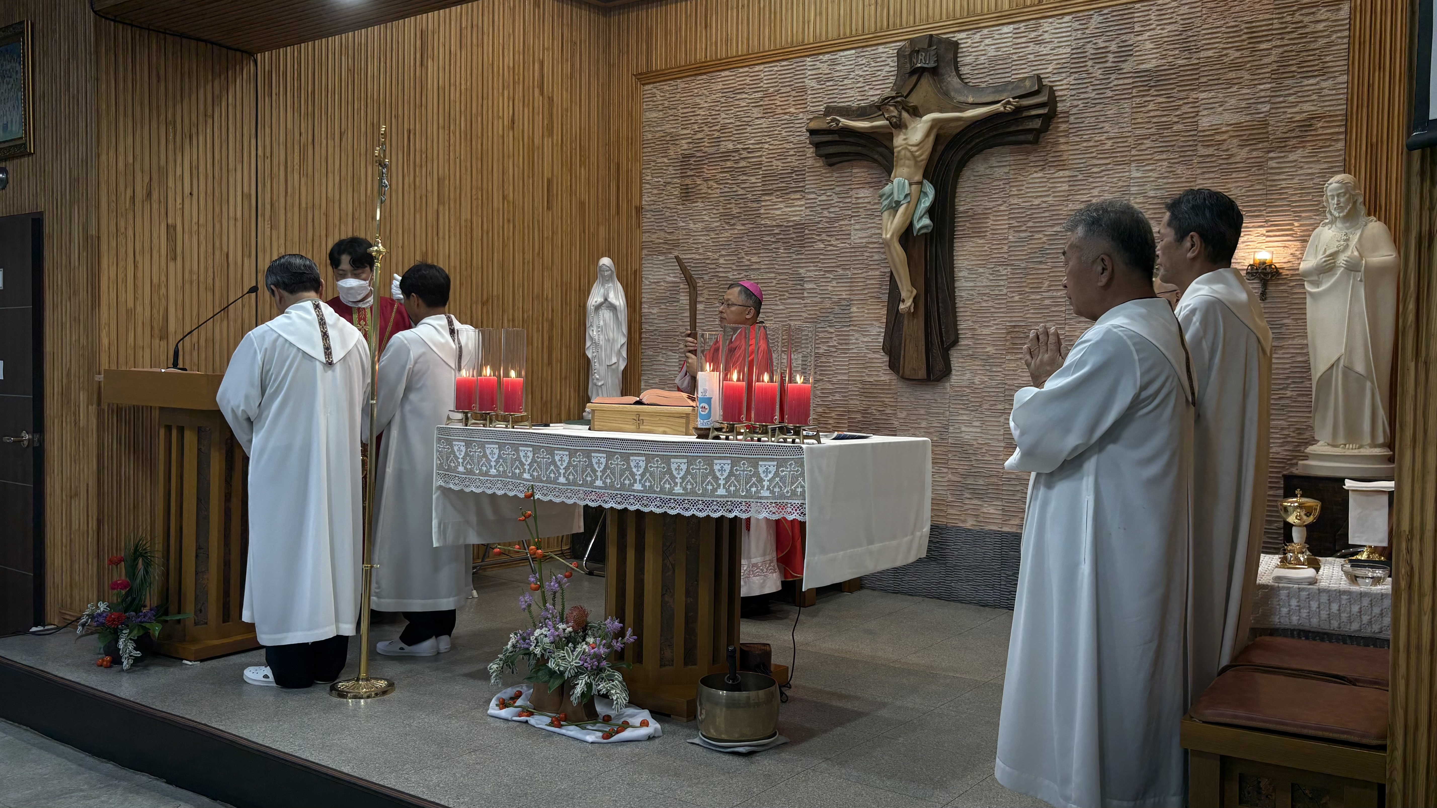 2025.9.21. 본당의 날(19일)을 맞아 김주영 시몬 주교님의 사목방문으로 공동체 미사가 거행되었다. 복사단이 보강되어 장엄하게 진행되었다. 사목회장도 복사단으로 봉사하였다. 주교님의 소박하고 멋진 강론에 이어 5명의 예비자 축복식도 있었다. 미사후에는 단체사진을 찍었는데, 미처 김병운 야고보 신부님께서 빠진가운데 진행되었다. 다시 찍어야 하는데 주교님께서 그냥 들어가 버리셨다. ㅠㅠ 나중에 뽀샵으로 추가하여야 할 것 같다. 그 후에는 본당의 날의 기념하는 식사 나눔이 이어졌다. 사실 주교님께서 3일간이나 오셨었는데 밥 한번 같이 먹지 몼했으니 오신 것도 아니다. 어쨌거나 주교님 사목방문은 샘밭성당이 사랑으로 하나되는 징검다리 역할이 되리라 확신한다.