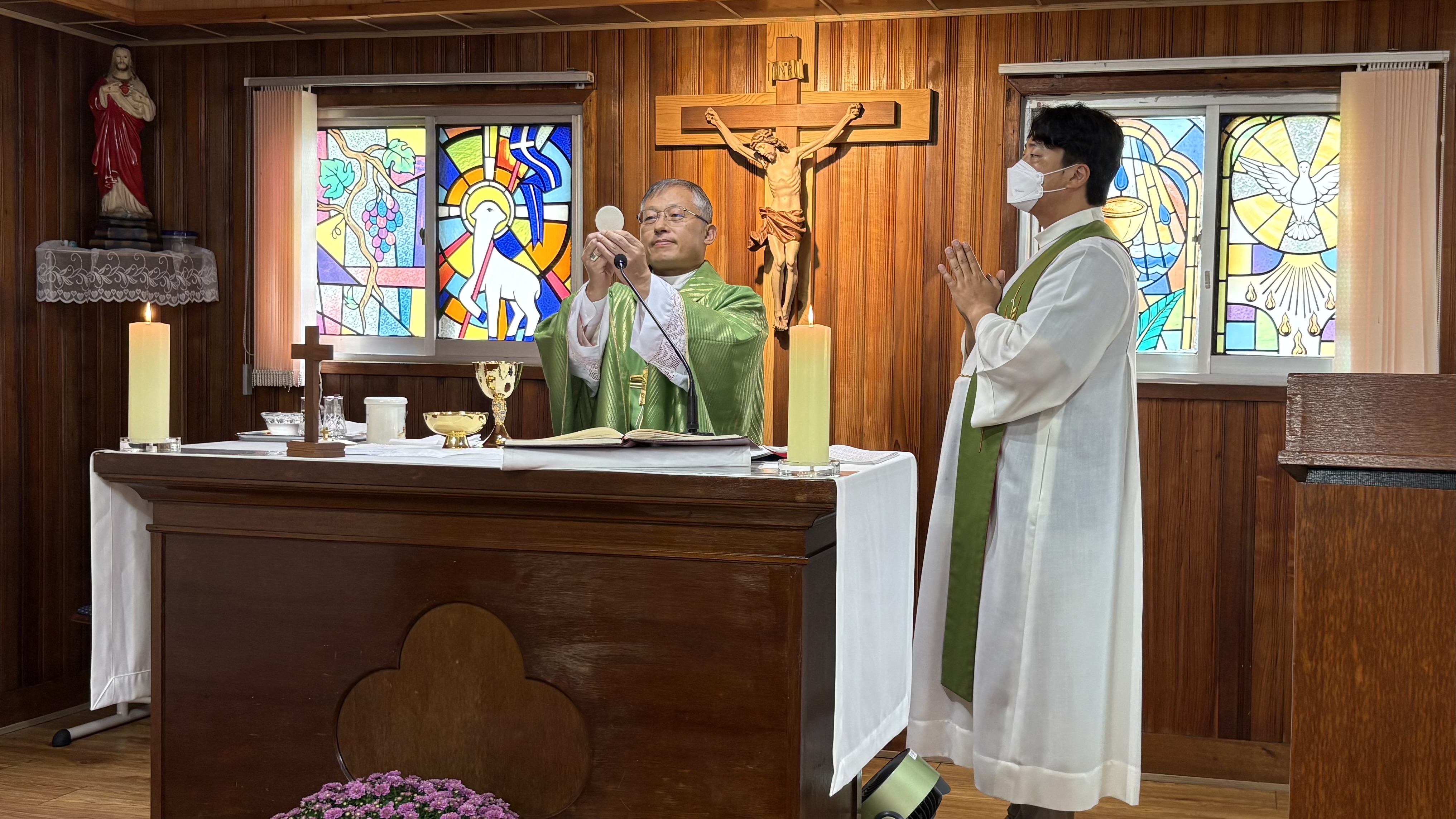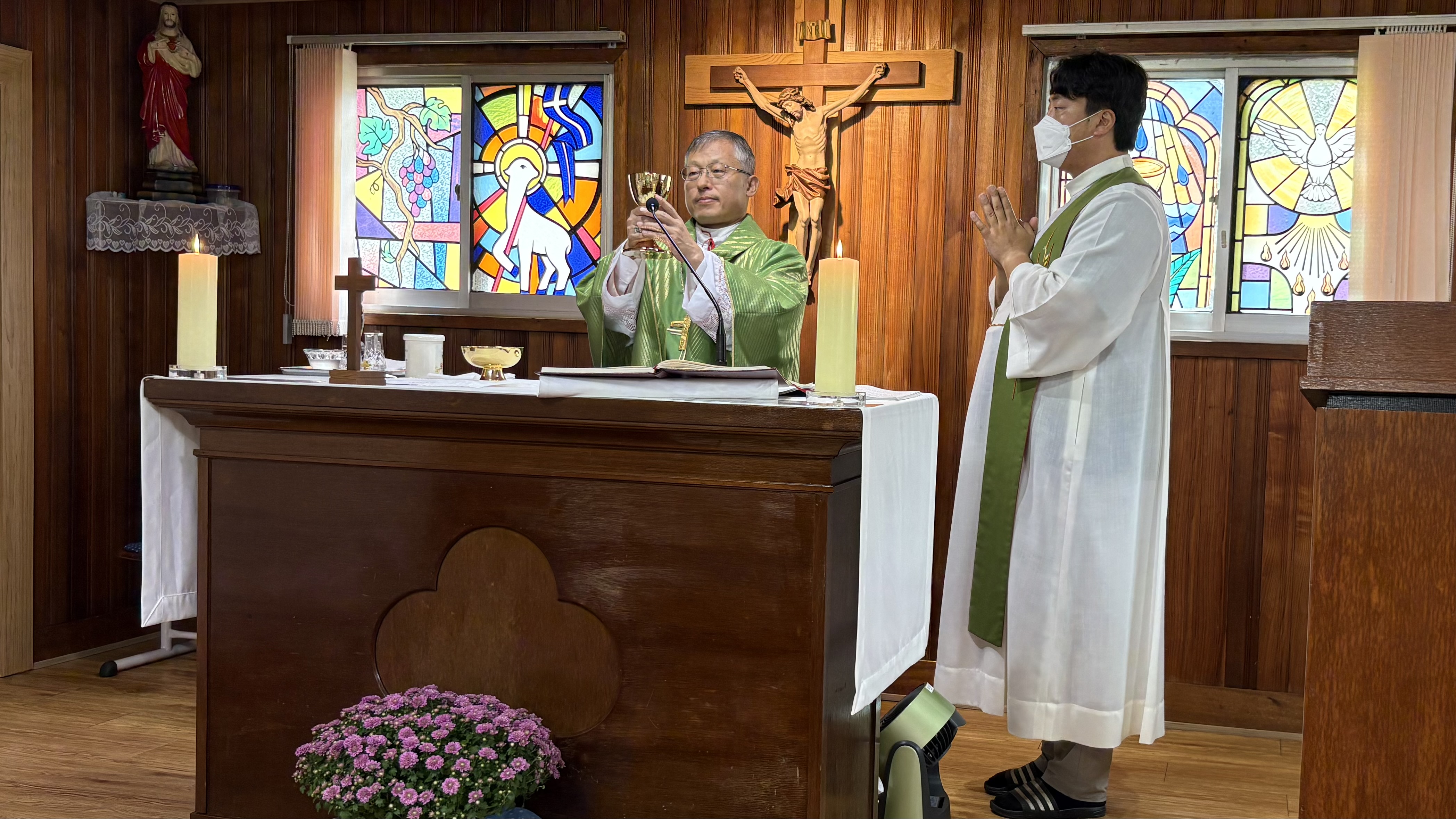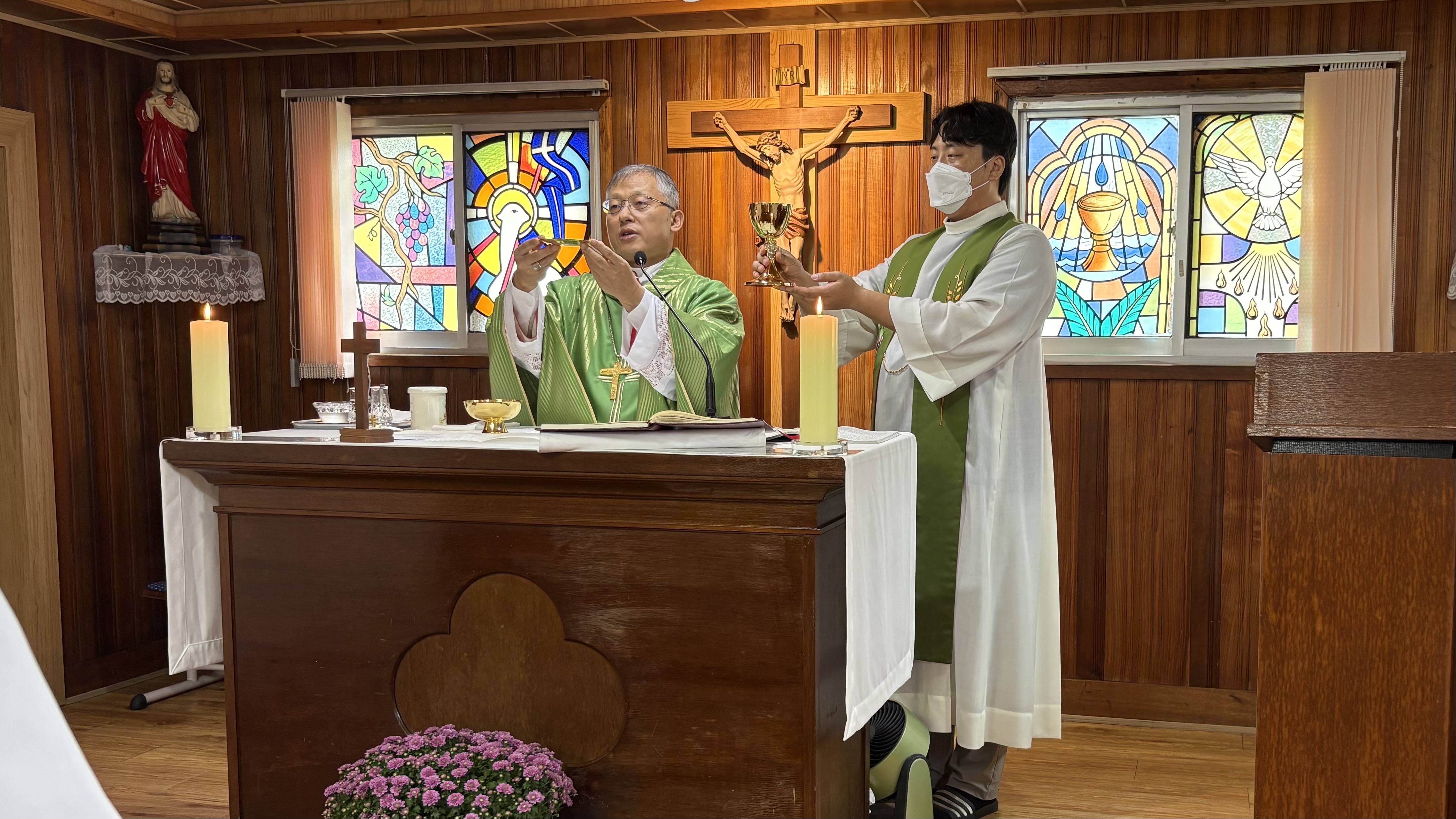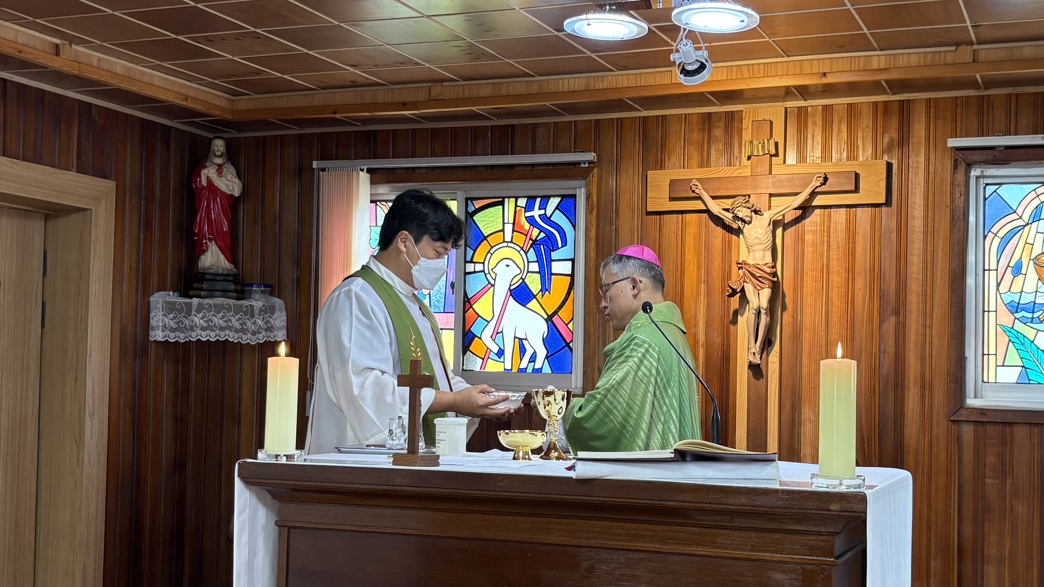 2025.9.20. 토요일 김주영 시몬 주교님께서 발산공소를 사목방문하였다. 미사는 김병운 야고보 신부님과 함께 집전하시고 이어서 발산공소 교우들과 간담회를 하였다. 일체의 음식은 물론 과일마저도 준비하지 말라고 하시고 만남의 방으로 이동하지도 않고 성전에서 간담회를 이어 갔다. 발산공소 교우들은 염소 우리에 둘러싸인 공소의 현실을 개탄하며 이전 신축을 건의하였다. 회의 이후 차를 나누고 성모상 앞에서 단체사진을 찍고 마무리하였다.